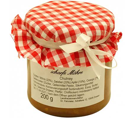 Als echte Landfrau mit großem Garten und netten Nachbarn, Freunden und Bekannten, mit eben solchen, verarbeitet Dr. Andrea Pahmeier in ihrer Manufaktur vorrangig selbst geerntetes, vollreifes Obst und bereitet daraus feinste Fruchtaufstriche und köstlich süß-würzige bis scharfe Chutneys.